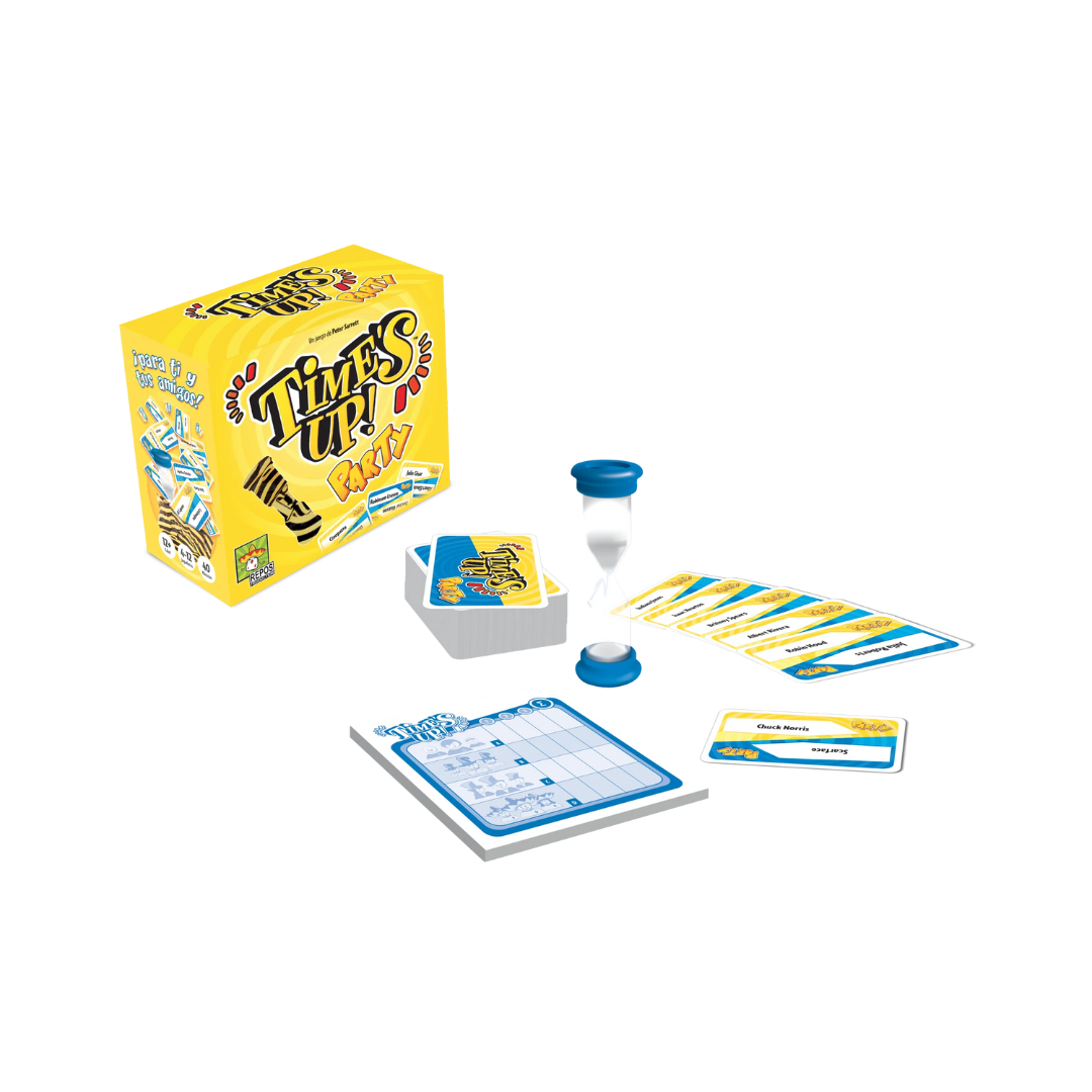 ¡Esta edición no debe confundirse con Time’s Up! Edición Amarilla. Ambas ediciones tienen cajas amarillas muy similares pero Time’s Up! Edición Amarilla solo tiene personajes famosos mientras que Time’s Up! Party tiene personajes famosos mezclados con varios títulos famosos.