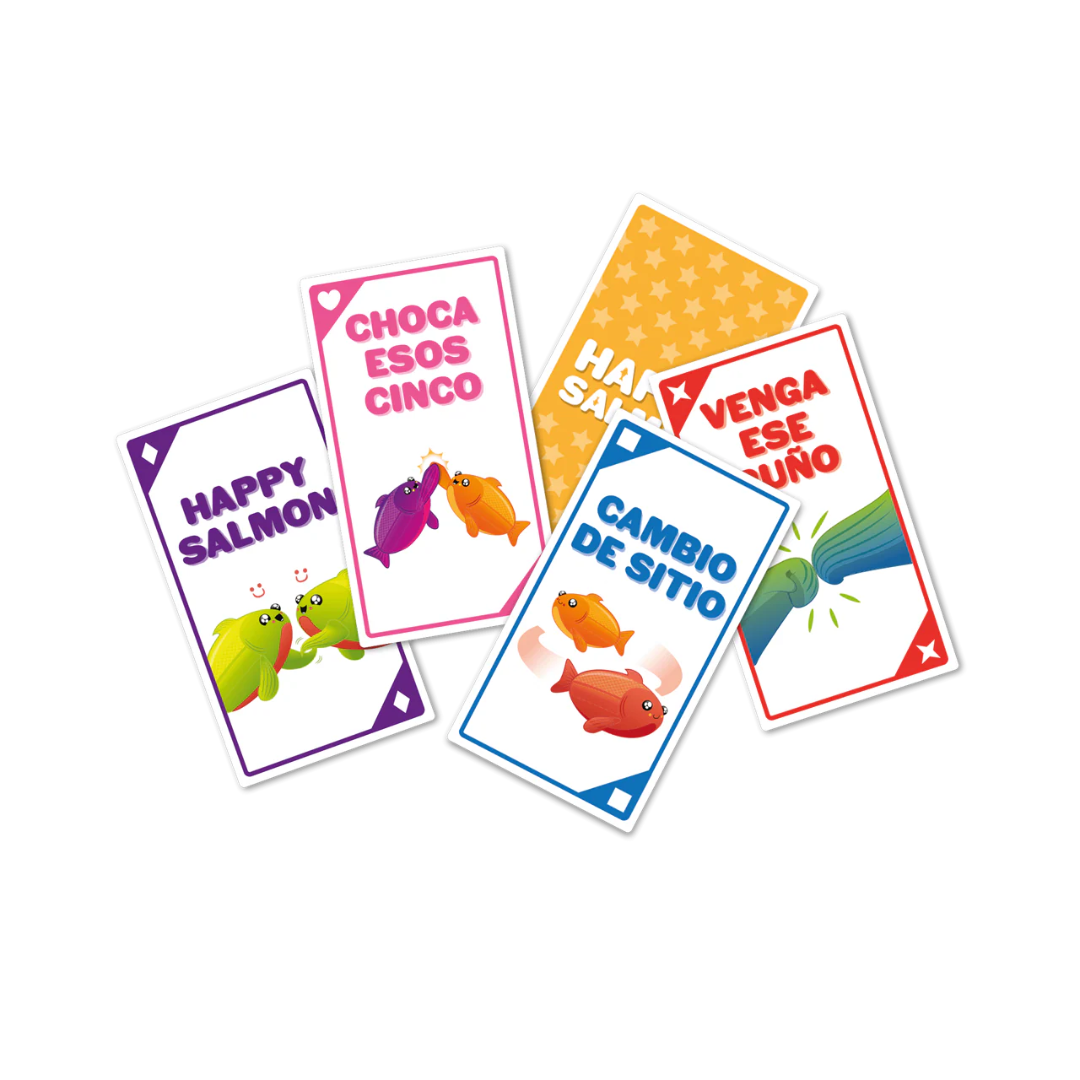 Happy Salmon es el vertiginoso juego de cartas que hace que, durante apenas dos minutos, nadie pare de moverse y reír.