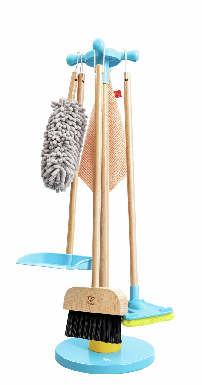 Con este fantástico set, ¡Limpiar es muy divertido! El conjunto fomenta el juego de imitación en los niños y los motiva a mantener su habitación ordenada y limpia. El set incluye una escoba, un trapeador, un recogedor, un plumero, un paño de limpieza y un soporte para colgar.