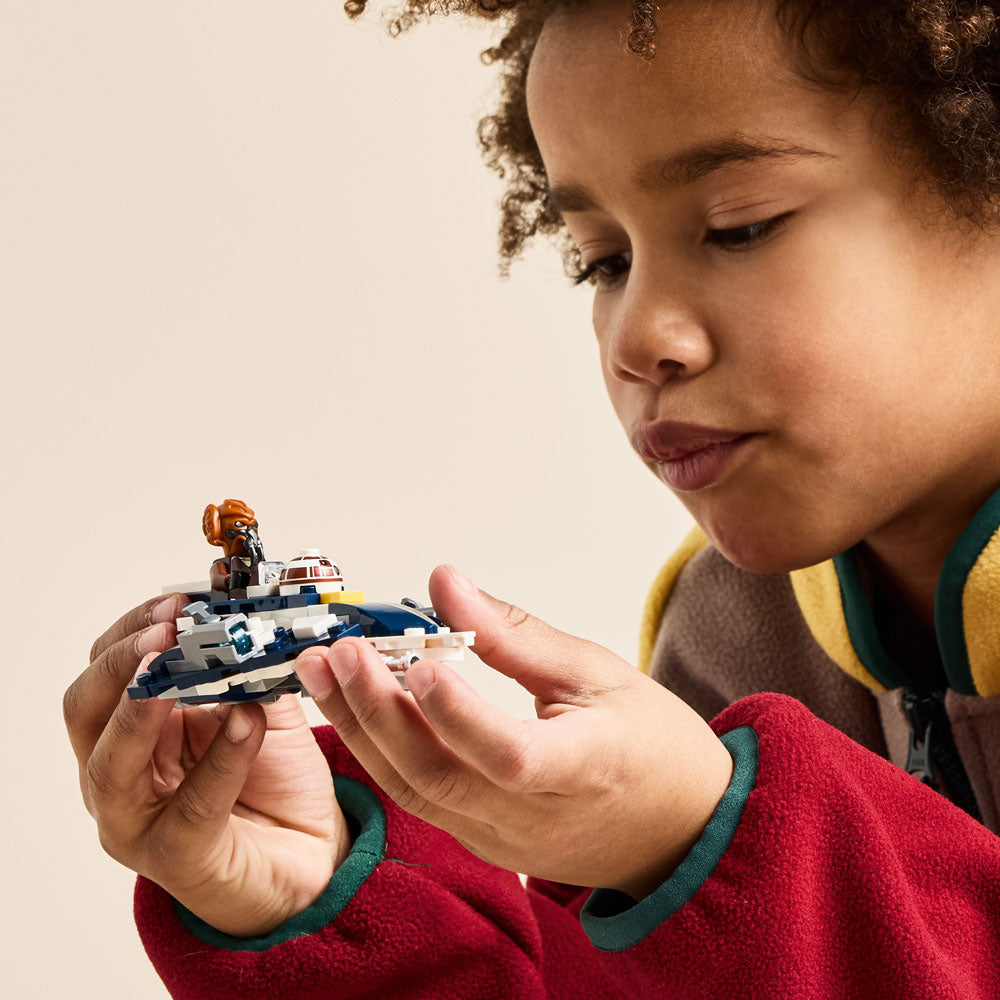 ¡Ofrece a tu peque una toma de contacto genial con el universo LEGO® Star Wars™ a través del set Microfighter: Caza Estelar Jedi de Plo Koon! Este juguete de construcción, la primera recreación LEGO Star Wars Microfighters de un caza estelar Jedi,es un estupendo regalo Star Wars para niños, niñas y fans a partir de 6 años. Diseñado como modelo de construcción rápida, cuenta con detalles a imagen del caza estelar de Plo Koon que aparece en Star Wars: Las Guerras Clon y está equipado con cabina para una minifigura LEGO y 2 cañones que disparan.