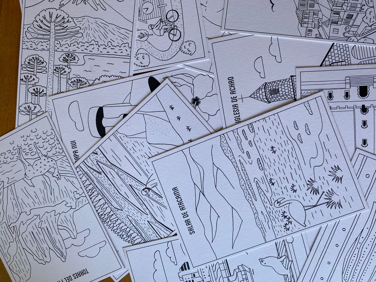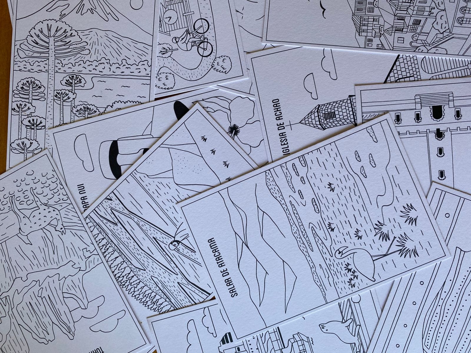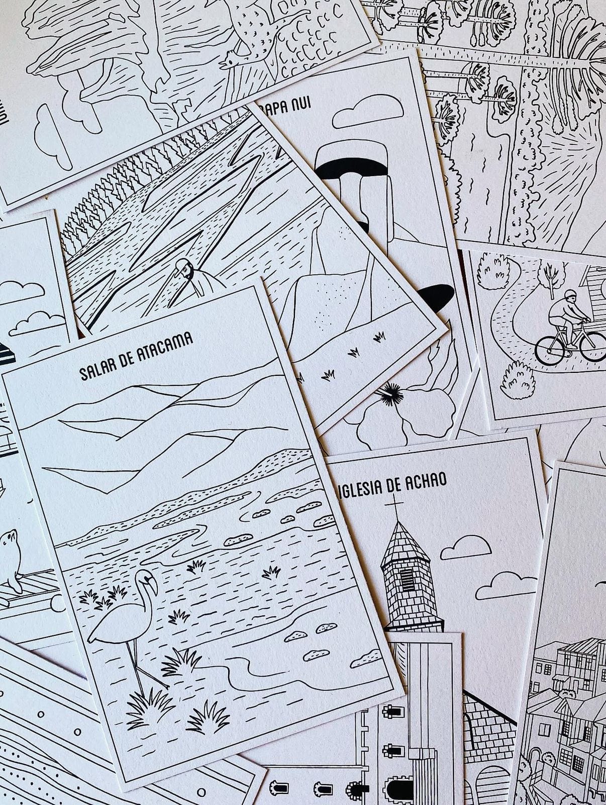 Cada ilustración está pensada para ser coloreada, invitando a crear tu propia versión de Chile: un país de contrastes, memorias y paisajes infinitos.