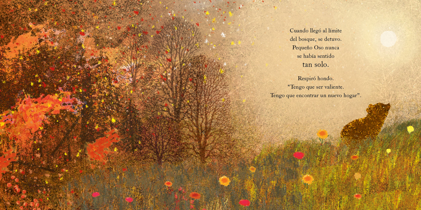 Pequeño Oso se ve obligado a abandonar el hogar en el que es tan feliz porque deja de ser seguro. En su peregrinaje buscando un lugar en el que refugiarse, trata de meterse en la casa de otros animales que le recuerdan a su cueva, pero en ninguno es bienvenido. Zorro, Jabalí y Coneja le piden que busque otro sitio. Desesperado, llega a un enorme bosque muy diferente al suyo, donde conoce a otros animales que le ayudarán a sentirse como en casa.