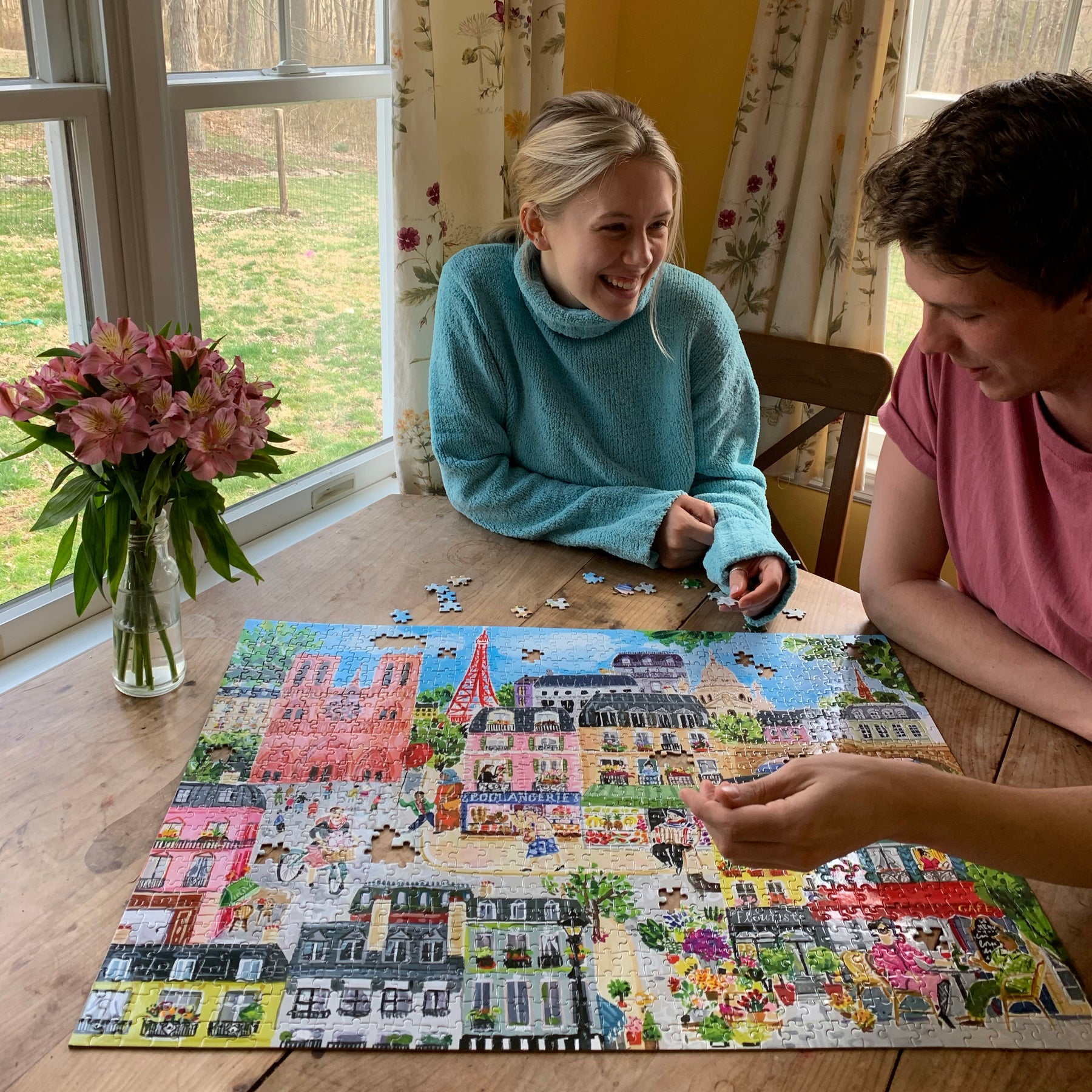 Recorre esta encantadora calle parisina con rompecabezas. Este pequeño rincón de París está a un corto paseo en bicicleta de la Torre Eiffel. Los rompecabezas de 1000 piezas son una actividad fantástica para toda la familia. Casi puedes oír el acordeón y saborear los croissants. Ilustraciones de Jennifer Orkin Lewis.