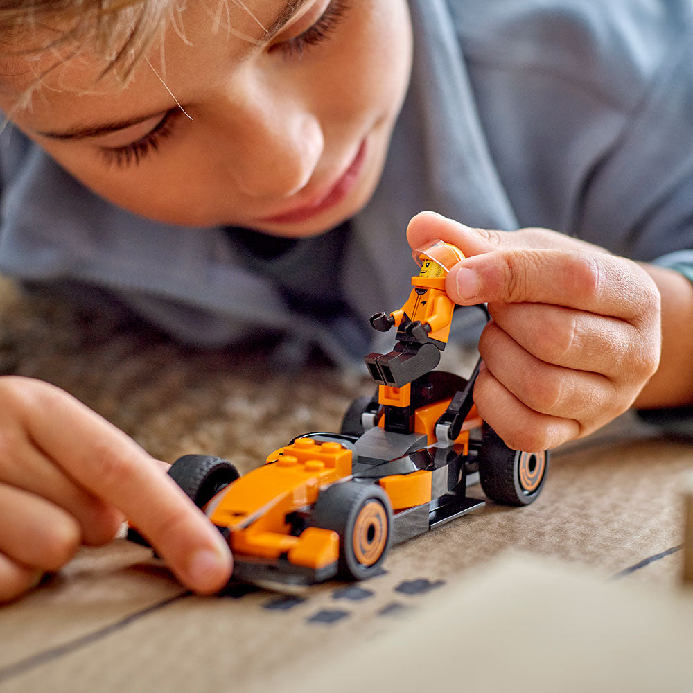 Sumérgete en las emociones de las carreras de velocidad con el set LEGO® City Piloto de F1® con Auto McLaren (60442). Ideal para los fans del automovilismo a partir de 6 años, el minivehículo de juguete tiene un diseño de Formula 1® superaerodinámico con neumáticos lisos y viene con una minifigura de un piloto de F1 de McLaren para jugar e imaginar historias. Descubre la dinámica escudería de sets LEGO inspirados en la F1 para niños y adultos.