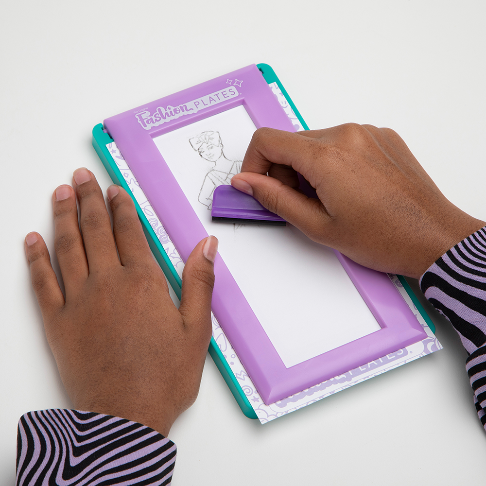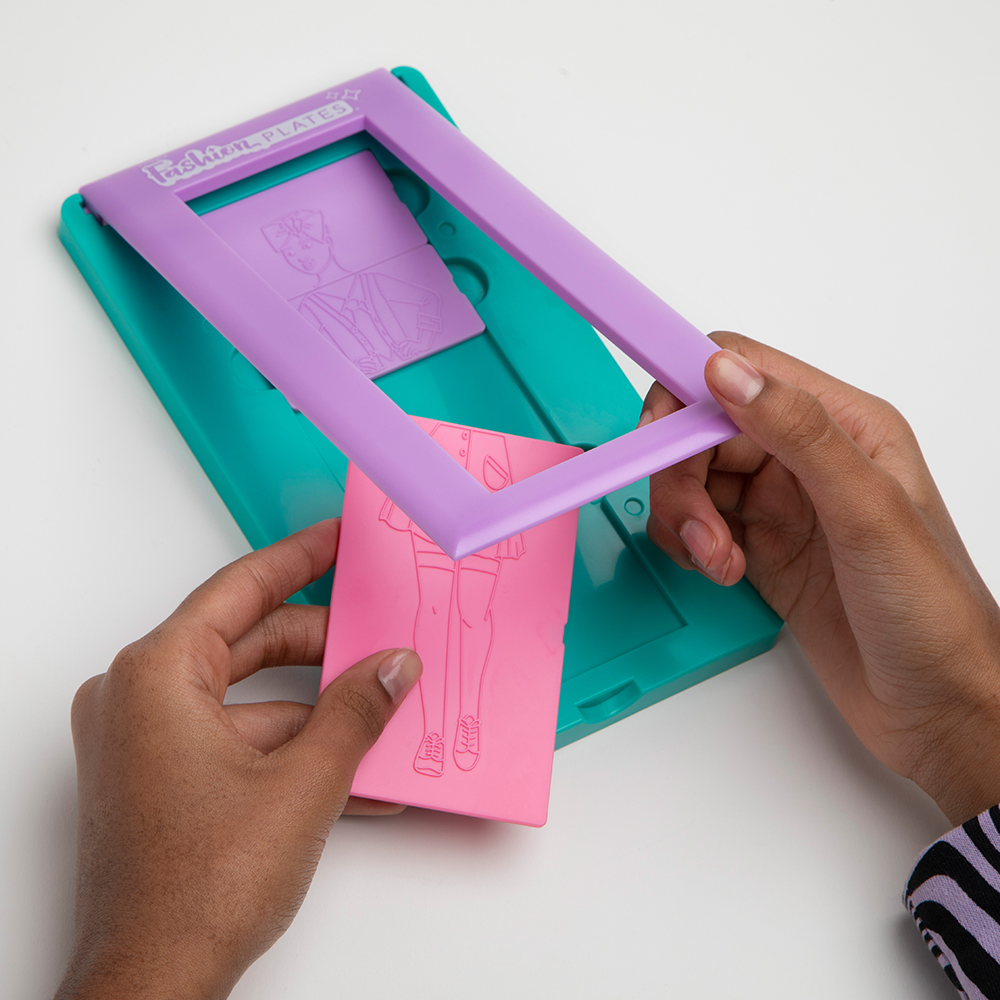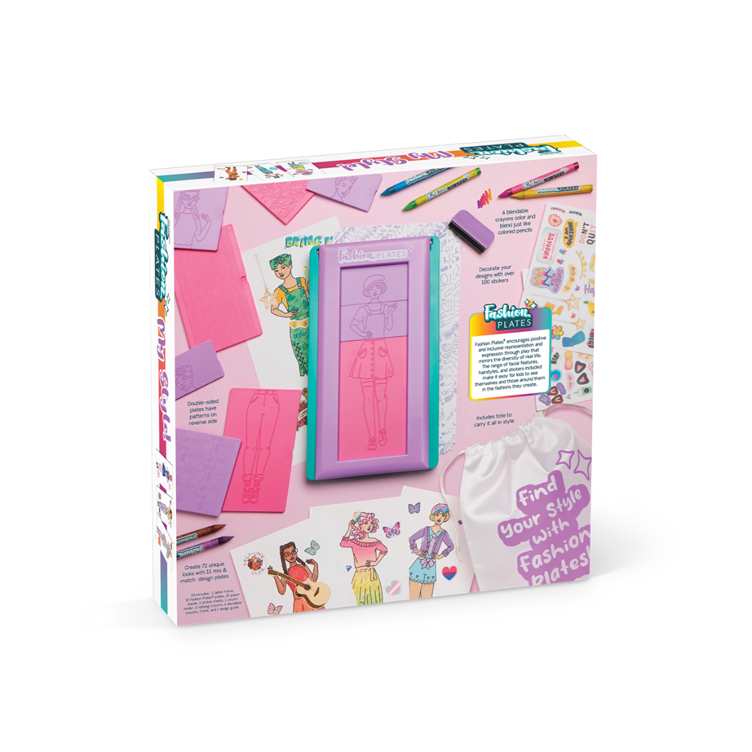 El set de diseño Fashion Plates My Style hace que crear tus propios diseños de moda sea fácil y divertido para los diseñadores principiantes. Crea looks únicos combinando las diferentes placas de relieve en la tableta Fashion Plates. Con solo unas pocas pasadas del lápiz, tu diseño se transfiere al papel de dibujo. Añadir colores y detalles con calcomanías a tu nuevo look es muy sencillo con los lápices de artista incluidos y las texturas de moda integradas en el reverso de cada placa Fashion Plate. ¡El elegante estuche portaobjetos guarda tu tableta, placas y herramientas, para que puedas llevar tus diseños y creaciones de moda a donde quieras!